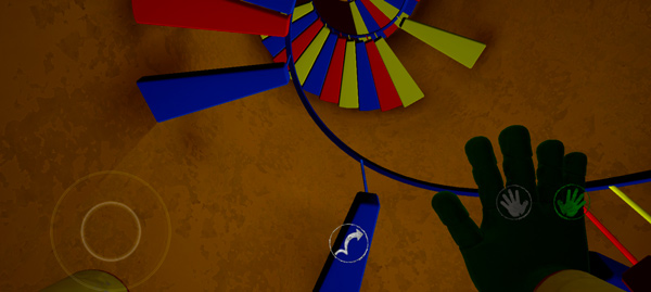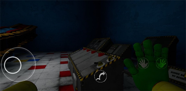 4、玩家首先要操纵波比找到自己缺失的玩偶手;同时熟悉一下左侧和右侧的虚拟操控按键;