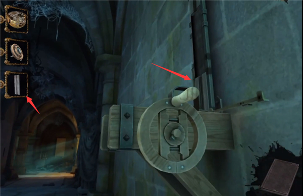 7、点击左侧墙壁上的机关。