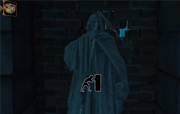 12、按住石像不动,直到推开门,然后进入密室。