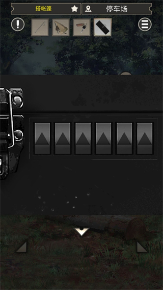 找到放在箱子上的车钥匙,然后去车子的后备箱,找到左边的钥匙孔,打开即可。把里面的东西全部拿出来,这里记得要不断双击帐篷收纳袋,别东西没拿全,之后在选择合成一个帐篷,把最后一件帐篷布和那里面拿出来的支架组合即可,组合就是双击放大物品a时,可以点击另一个物品b然后再点击到a上即可完成组装成为c。之后提示是拿锤子,定钉子,去拿车下工具箱,然后要密码,这时候用钥匙点击车门启动汽车,看尾灯得到密码得到锤子。