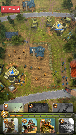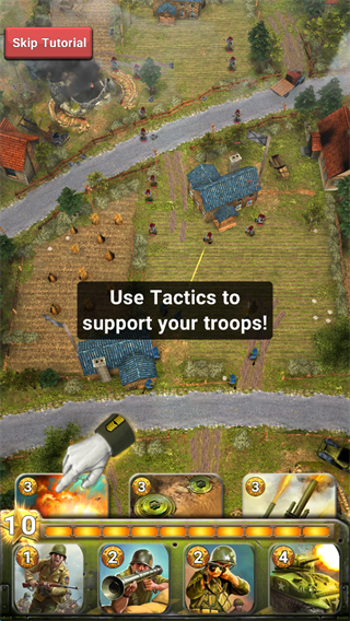 围攻第二次世界大战游戏拥有两种卡牌——兵种和战术卡牌,兵种卡牌有步枪兵、狙击手、伞兵、坦克等,而战术卡牌则有空袭、炮击和雷区等,玩家需要充分利用这两种卡牌,相互搭配,如坦克抗伤害、炮兵对敌坦克、步兵堆积数量积累伤害,亦或者全坦克、全步兵,游戏策略灵活,全由玩家决定!
