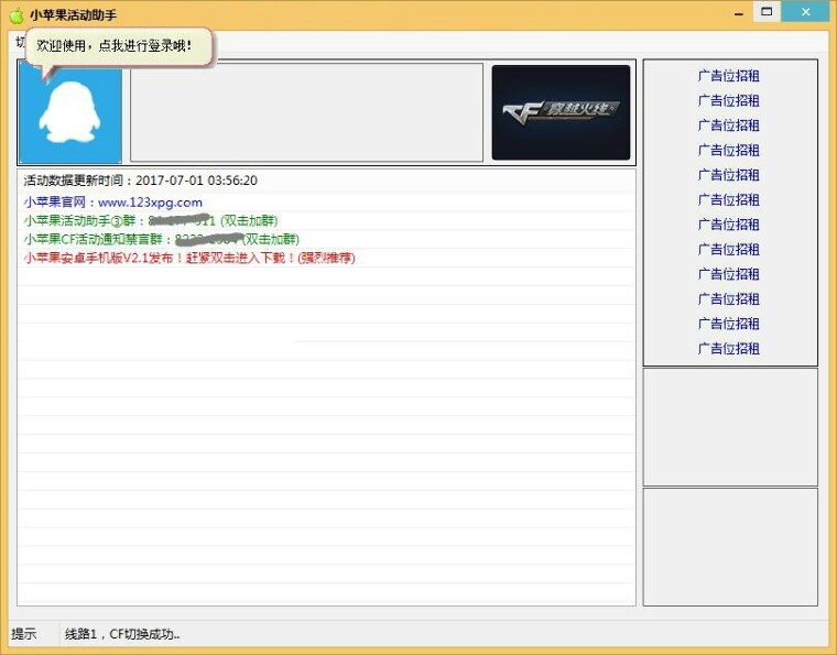 CF小苹果活动助手是一款深受《CF穿越火线》玩家欢迎的游戏辅助软件,主要用于帮助玩家领取游戏活动道具。该助手不仅支持穿越火线活动道具领取,还支持 DNF、LOL、NZ、QQ 飞车等游戏的活动,同时也支持部分 QQ 类加速、成长值签到等相关功能,适用范围较广。