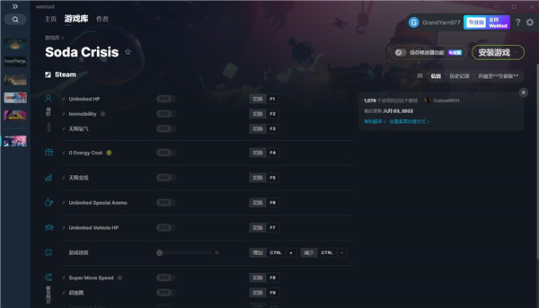 1、确认修改器是否适用于你游戏的版本(游戏版本号、发行平台等,不同版本特征不同修改器可能会失效)。2、双击安装WeMod,如果已经安装直接搜索游戏英文名使用。