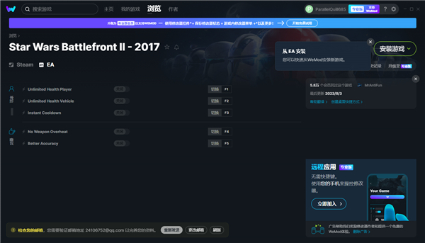 2、双击exe文件安装WeMod,如果已经安装直接搜索游戏英文名使用;