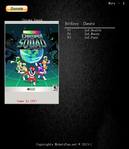 彩度战队修改器是专门应对同名游戏彩度战队的一款强大的修改器。功能非常强大。可以做到无限生命、金钱等。简直是彩度战队终结技啊。作为一款回合制的策略经营游戏,拥有经典的像素风画面。你需要打理好自己的特技工作室,雇佣演员,联系电视台,联系外景地,买道具,还要亲自指导各种特技动作,总之做这一切都是为了拍出属于你自己的“恐龙战队”系列短片。更要命的是,你还要处理好和影迷间的关系,真是事无巨细,事必躬亲啊。战队英雄、经理、回合战术,你所想要的一切都将在《彩度战队(ChromaSquad)》中体现。《彩度战队》是一款像素风格的回合制策略游戏,你在游戏中扮演独立电视制作人,随着你的成长,会有更多演员加入,游戏中你需要购置更多装备,用硬纸板制作更多道具,指挥你的小队在战斗中对抗外星人。《彩度战队》是一款复古风格的策略角色扮演游戏,游戏设定上和日本的特摄剧《恐龙战队》有些相似,看过这个系列节目的玩家一定会觉得倍感熟悉。游戏包含大量的自定义内容,快节奏的战斗方式和火爆的战斗场面让人印象深刻,推荐试玩。