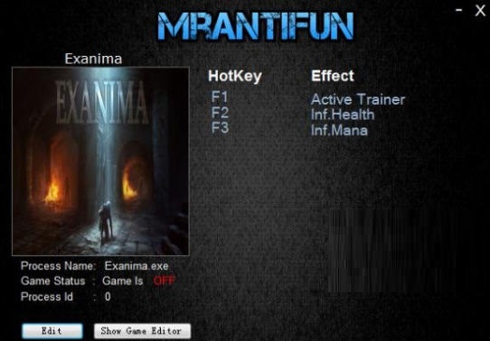 Exanima无限生命体力修改器,是最新的非常好用的一款Exanima修改器,拥有十分简单的修改功能,帮助你轻松闯关,建议适度使用,不然游戏会没有挑战性。《Exanima》是一款以地牢为主题的游戏,在黑暗的地下世界中开始冒险,需要收集一些道具和武器来帮助你打败更加强大的敌人,在游戏中解开各种谜题,完成任务,在战斗系统中考验了玩家的战术。通过这款修改器,玩家们可以在游戏中可获得无限生命,无限魔力这两项实用功能。Exanima修改器由MrAntiFun制作,exanima修改器是该款同名角色扮演类游戏——《exanima》的辅助工具。这款exanima修改器可进行无限生命和无限魔法值的操作设置辅助,让你更轻松的进行游戏体验!功能简单但很实用,使用时先运行游戏,再启动修改器。感兴趣的朋友们赶紧下载使用吧!