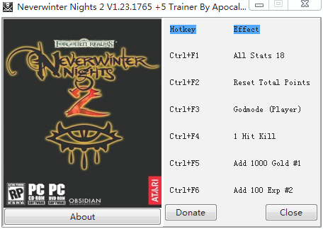 2、打开无冬之夜2全能修改器,按相应热键即可修改