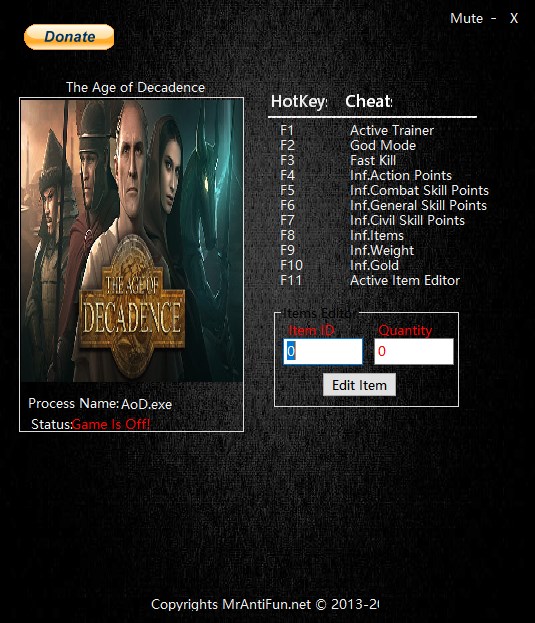颓废年代修改器是根据同名游戏“颓废年代”所推出的辅助工具,玩家可以利用该工具在游戏中尽情享受游戏的乐趣,并提供了无敌模式、快速击杀、无限行动点、无限格斗技能点、无限将军技能点、无限公民技能点、无限负重、无限道具等,推荐给所有游戏玩家使用。