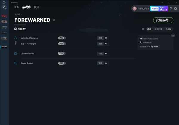 FOREWARNED四项修改器