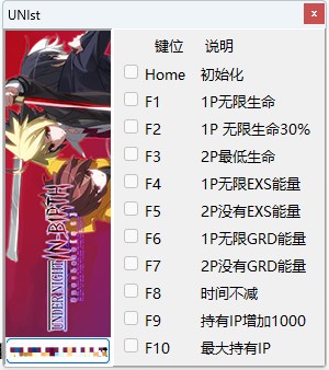 夜下降生十项修改器是一款专为同名动作格斗游戏《夜下降生(UNDER NIGHT IN-BIRTH Exe:Late)》量身定制的辅助修改软件,该软件功能强大、使用方便,不仅能完美的适配于游戏,而且功能有P无限生命、1P无限生命30%、2P最低生命、1P无限EXS能量、2P没有EXS能量等以下十项功能,从而为您提供游戏体验感。