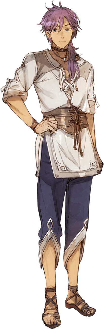 他是一位冒险家兼剑士,总能恰好出现在不该出现的地方。尽管在整个系列中他都保持沉默,但他却展现出那种从不袖手旁观、竭尽所能帮助他人的本能。他被许多人誉为剑术大师。