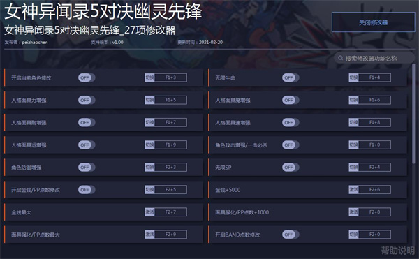 女神异闻录5对决幽灵先锋二十七项修改器使用说明