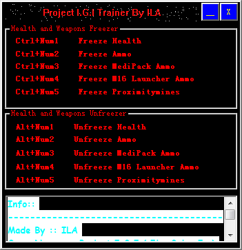秘密潜入五项修改器是非常强大的作弊工具。提供了五项修改功能。具备修改游戏人物的生命、弹药、药品、地雷等属性,极大的降低了游戏难度,能够帮助玩家更好的通关游戏。喜欢的朋友不要错过哦了!