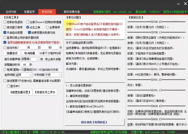 多开与自动登录:支持全功能无限多开,但需谨慎使用,以免被官方封号。具备批量登录、定时上号任务、自动创建角色、自动使用 2888 武圣卡等功能,还能自动上号、掉线重连,可实现 7×24 小时无人值守挂机。