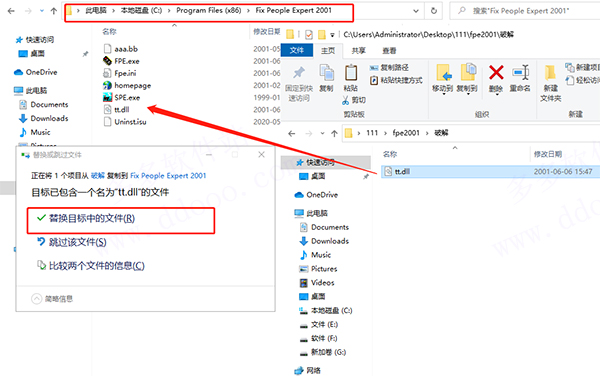 6、之后我们将破解文件夹中的tt.dll补丁拖至软件安装目录下替换即可;