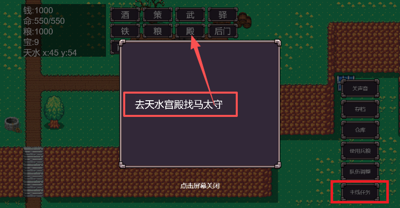 2、随后点击屏幕右下角的“主线任务”,可以看到任务详细,要求宫殿,点击屏幕上方的“殿”即可直接传送过去。