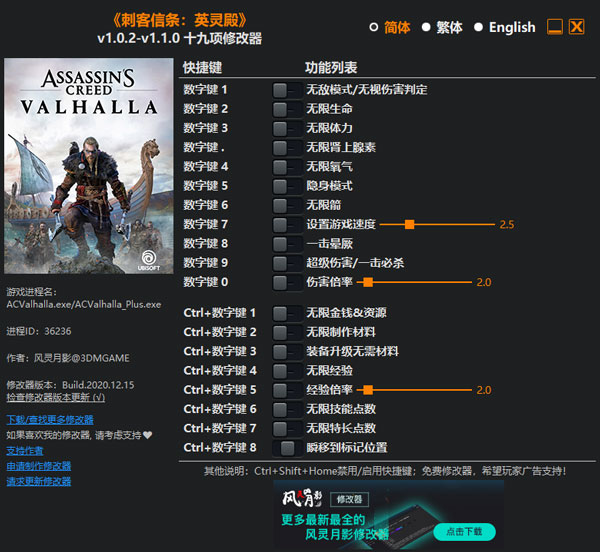 刺客信条英灵殿修改器 风灵月影版