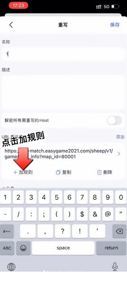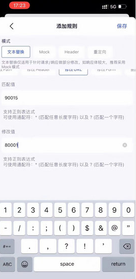 2、在获取到的抓包流程中到后缀为90016的地址右滑添加到重写添加规则修改url。