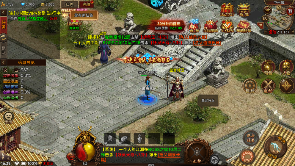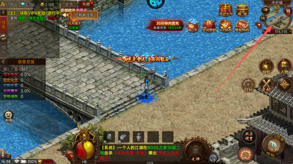 (2)建议跟着传世之路走,第一时间完成打金宝库的BOSS悬赏,使用宝库给充值卡去领游戏中的充值福利!