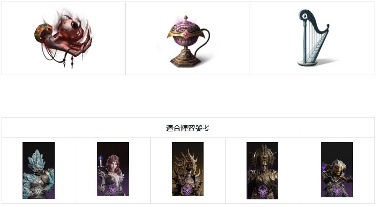 说明:适合威能技为非范围伤害的重击输出英雄穿戴,该神器的基础属性提供攻击与重击率加成,只需对相同目标持续施放威能技即可充分触发神器效果——提升伤害以及向敌人施加禁疗状态,非常适合用于时空涡流等对单攻坚模式。