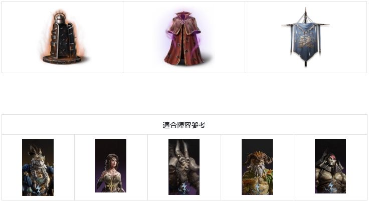 说明:各种场合下均非常泛用的神器,适合队伍中的次要输出英雄穿戴,只需启动元素亲和即可为全体友方目标提供攻击和防御加成。