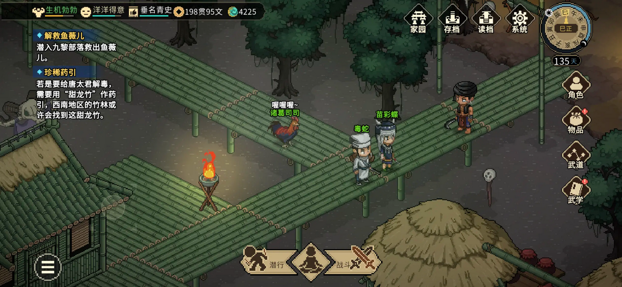 5、充满烟火气息的像素武侠世界。游戏中有着自然流逝的时间,各色NPC都有自己独立的行为AI。