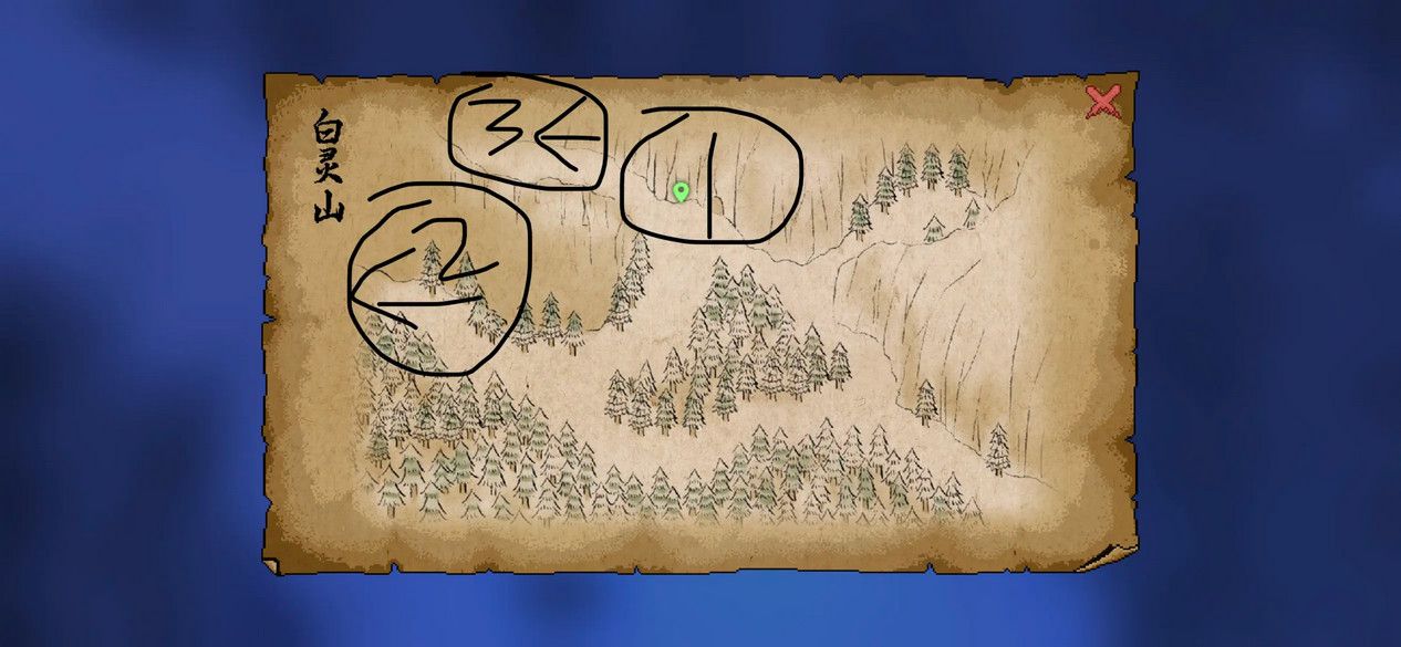 9.再次进入万兽山庄会看到老猎人被九黎围攻,然后帮助清理敌人(大地图万兽山庄左侧、上方、右侧一点的位置;不确定出现机制);清理过后,带陆剑南和老猎人对话,解锁白灵山;