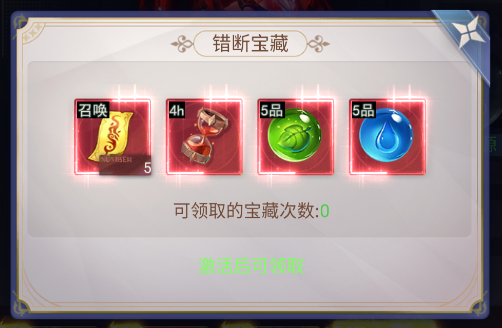 每击杀10个多人BOSS可领取[伯奇的宝藏]