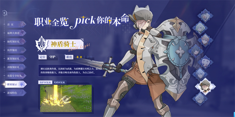 擅长近距离作战,以剑盾为武器。为盾牌灌注光明之力,拥有的伤害吸收能力。并能召唤光束灼伤敌人,为自己治疗。