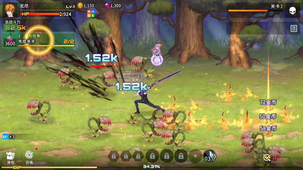 2、在战斗中,玩家可以通过点击右下角的攻击按钮来对敌人发动普通攻击,同时也能使用技能键释放强力技能。