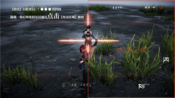 A1:游戏是采用滑屏操作触发攻击招式的,手机屏幕的右侧区域作为“攻击输入区域“,在这里滑动方向就可以进行对应角度方向的招式攻击,目前是八个方向+点击来完成攻击操作。