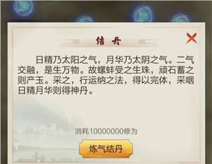 ①结丹:消耗1千万修为,花2个小时,转化成50属性,属性是随机的。