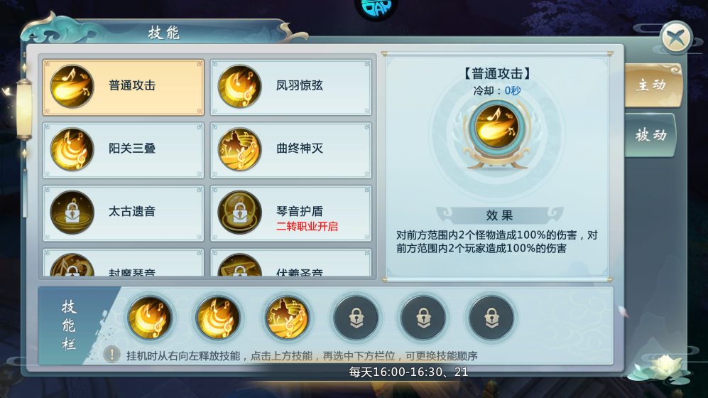 在技能界面中可自由配置主动技能,挂机状态下系统将自动释放技能,角色完成二转后还能解锁更多强力技能组合,战斗体验进一步升级。