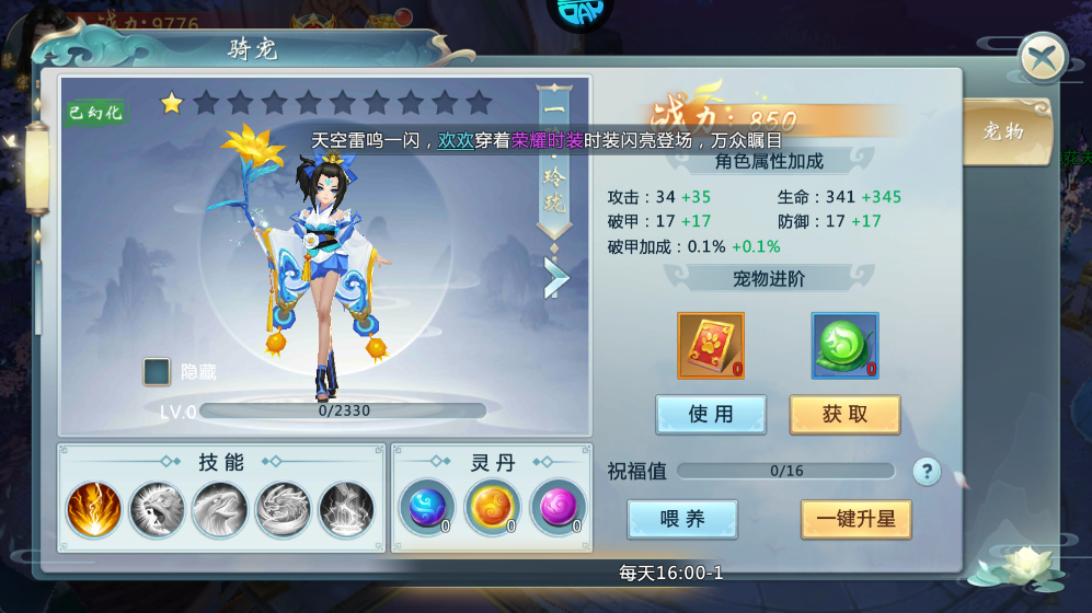 宠物系统支持进阶与喂养培养,通过提升宠物属性,为角色提供攻击、生命等多项加成,显著增强整体战斗实力。
