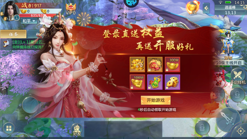 进入游戏并完成职业选择后,即可直接领取丰厚登录福利,包含大量元宝与实用道具,便能迅速踏入修仙世界,轻松起步。