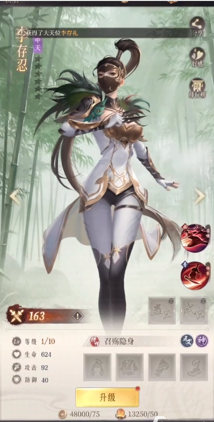 而队伍当中的最后一个位置,小编就建议大家考虑使用李存忍了,虽然整体的级别低了一个档次,但角色的成长属性很高,培养到后期依然可以爆发高额的单体伤害能力,非常适合专门去攻击敌人的单个角色。