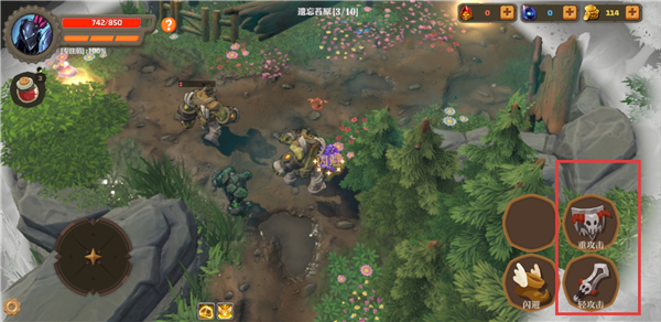 1、进入游戏后,左侧虚拟摇杆控制角色移动,右侧按钮用于攻击、闪避及释放技能。