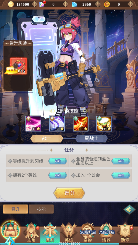 2、进入到晋升界面,完成相应的任务后可以直接晋升职业,同时还会解锁专属技能