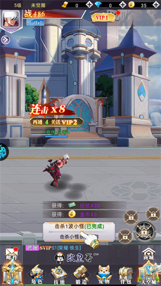 跟随指引完成主线任务,获取经验与金币,推进前期进度。