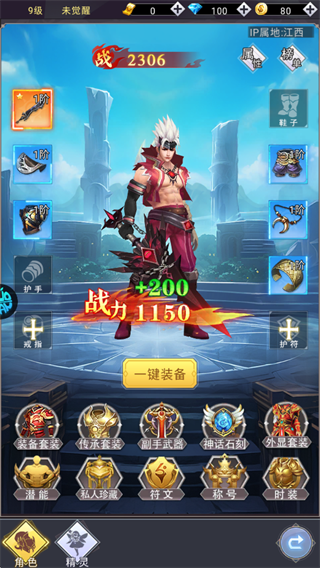 使用快速穿戴装备,后续还能解锁,装备套装、传承套装、副手武器等等大幅提升角色战力。