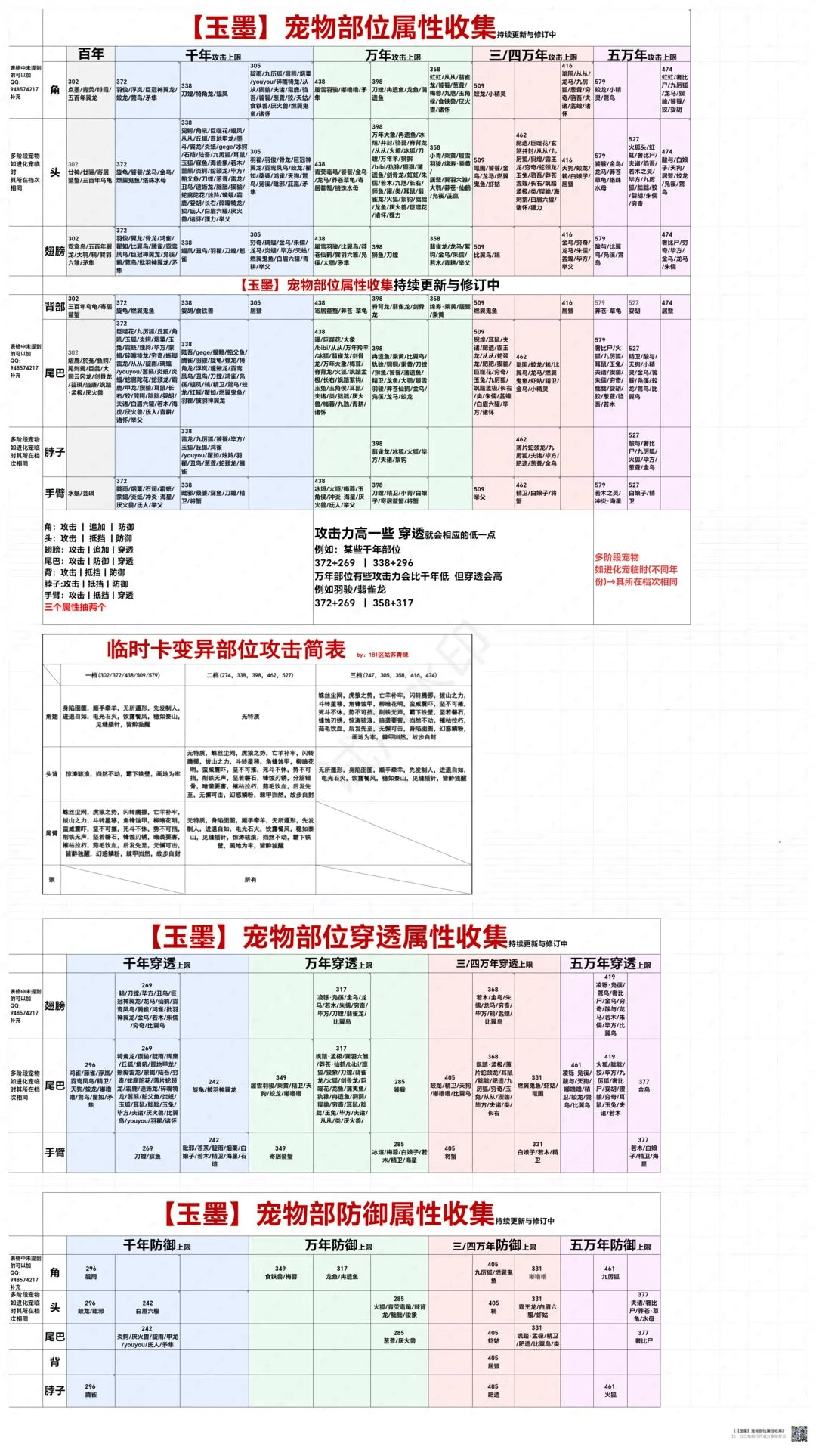 ③同一巨兽/野兽的角-翅,臂-尾,头-背档位一致,比如羽骏是一档角翅