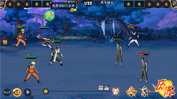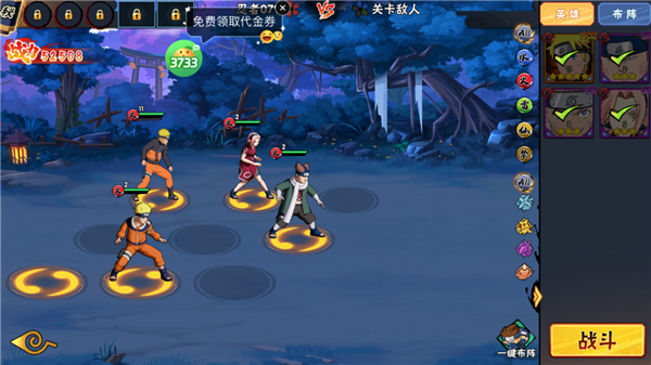 7、【在线福利】每日在线免费1000木叶币+200连抽,随意组建专属的传奇忍者小队。
