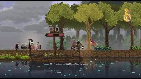 此外,游戏内的场景也是很丰富的,你可以旅行到新的土地,遇见山洪商人、君主及把这些岛屿称之为家的流浪者,但是要记得千万小心威胁你安全到达的新障碍,因为不只会有贪婪生物阻碍你前行,甚至就连周围的环境都能击败你。而这些场景全部都采用了像素描绘,但一点都不会觉得粗糙,精致密集的像素块反而还会让人眼前一亮,尤其是画面的细节,一点不比3D渲染的游戏差,除了各种风景的塑造外,还有季节和昼夜的交替,天气系统,水面倒影等等,将游戏画面感塑造的非常强烈。