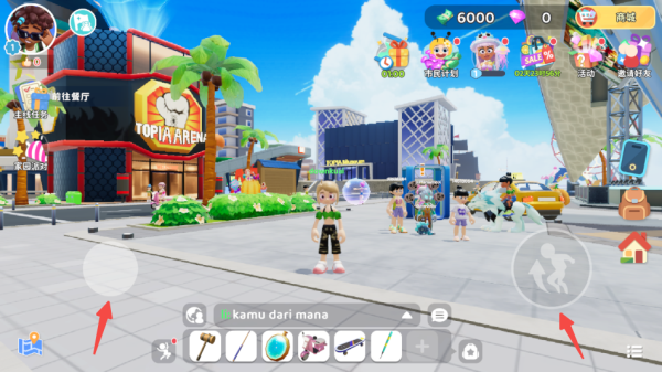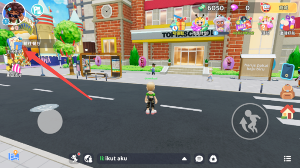 1、进入游戏,通过操控盘控制角色移动;