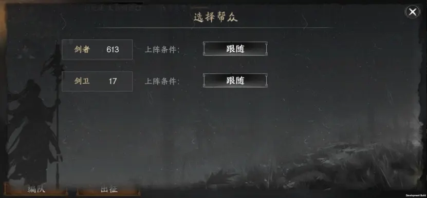 选定主将以后,点击主将头像框后面的箭头,可选择跟随出征的帮众。