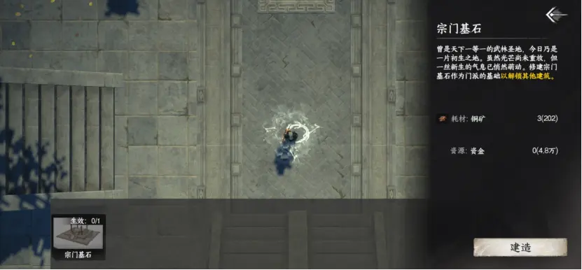 “宗门基石”是门派建筑的核心,需要优先建造,并且每次点开门派界面会加载到“宗门基石”所在的地方。