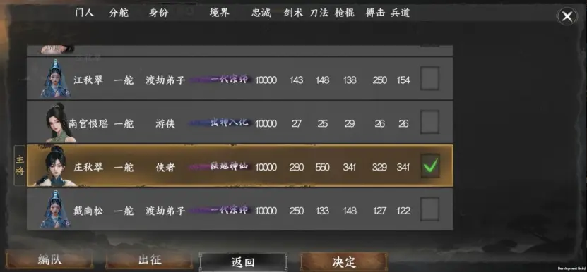 武略斋:兵法智慧宝库,藏书丰富,兵法战策琳琅满目,供人探索,为宗门筹谋。主要负责发展技业,指派弟子完成任务提升技业等级。