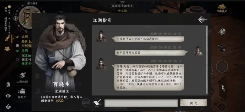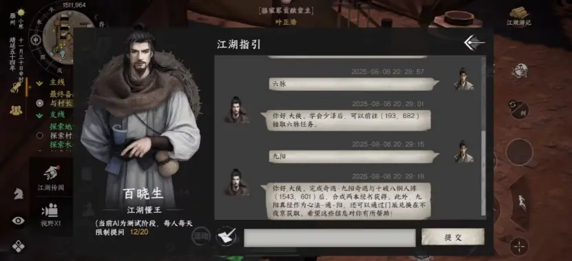 部分武学需要探索获取,不想探索的大侠们可以试试我们的“江湖百晓生”,我们接入了AI持续喂养攻略。