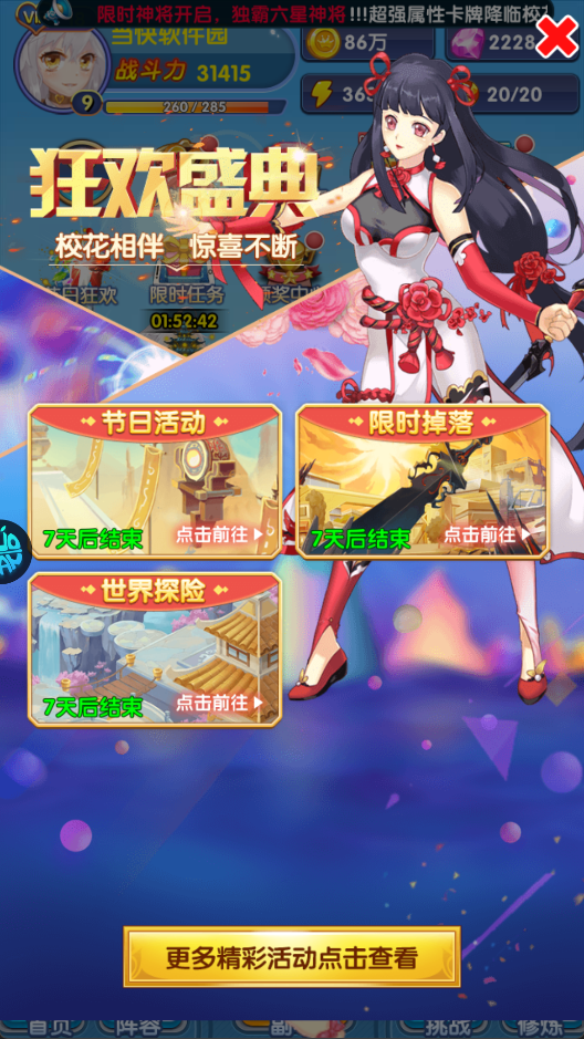 校花梦工厂爆装版是一款校园题材的美少女卡牌养成手游,主打爆装系统,让玩家能够快速获取顶级装备和技能,大幅提升角色战斗力和养成效率。游戏拥有众多百位精致二次元校花角色,每位角色都有独特造型、服装和剧情,玩家可通过收集、养成、及互动逐步解锁丰富内容。爆装系统结合角色升级、炼神、阵容羁绊和时装养成,形成高效战力提升闭环,使副本闯关、竞技场挑战和活动玩法更加轻松畅快。