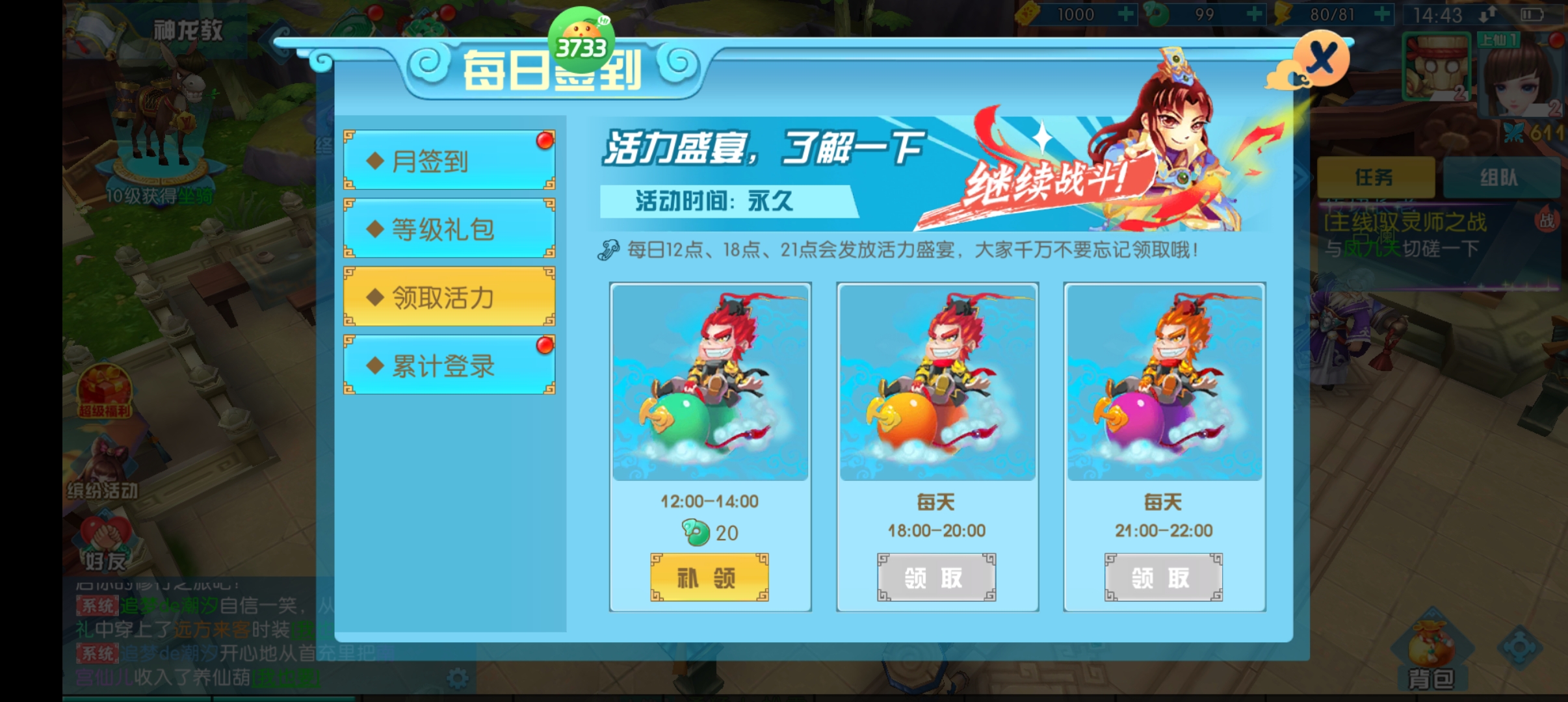 2、上线送1000代金券、99仙玉、10000灵石!开局领先一步福利
